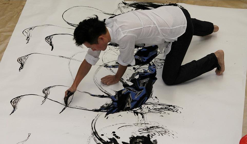 Kotaro Fukui in Live Painting-Aktion bei der Eröffnung Shinseido Tokyo Berlin Art Box (Okt. 2012. Photo: Reno Engel)