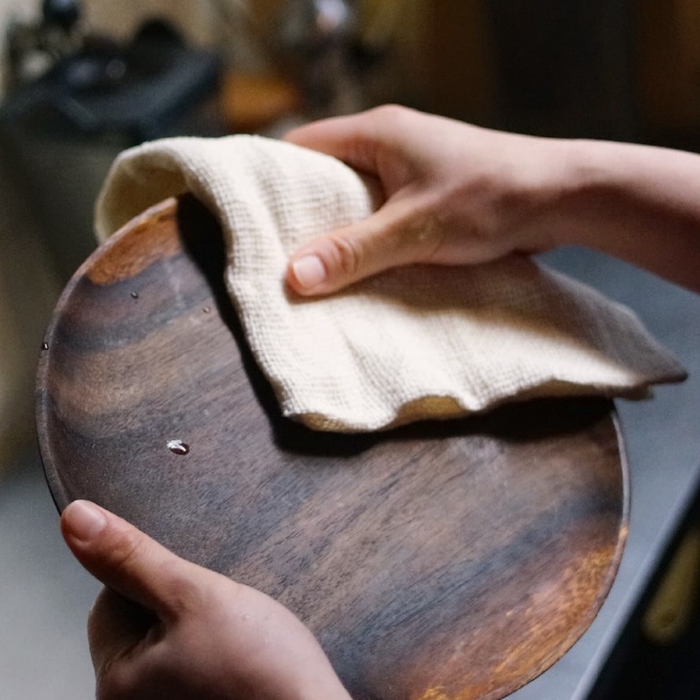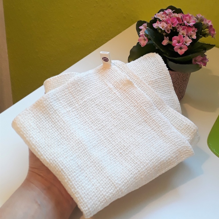 Das Garn ist mit der traditonellen japanischen Garabo-Technique gewonnen. Der Einzigartige Struktur und die Unregelmäßigkeit der Fäden bringt eine besonders gute Schmutzaufnahmefähigkeit. Trotzdem ist es sehr weich auf dem Haut.