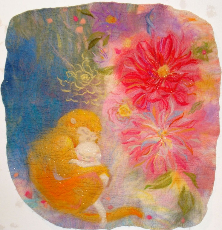 Das Färben und Weben habe ich fachlich an Douda Highschool of Arts in Kyoto gelernt und sie danach an der Kyoto Universität der Künste weiter studiert. An der Universität habe ich das japanische traditionelle Weben studiert und viele KIMONOs, gemacht.Am Magisterkurs habe ich angefangen, die flachen Werke mit Filztechnik zu machen. Heute beschäftige ich mich hauptsächlich mit Produktionen aus Filz.