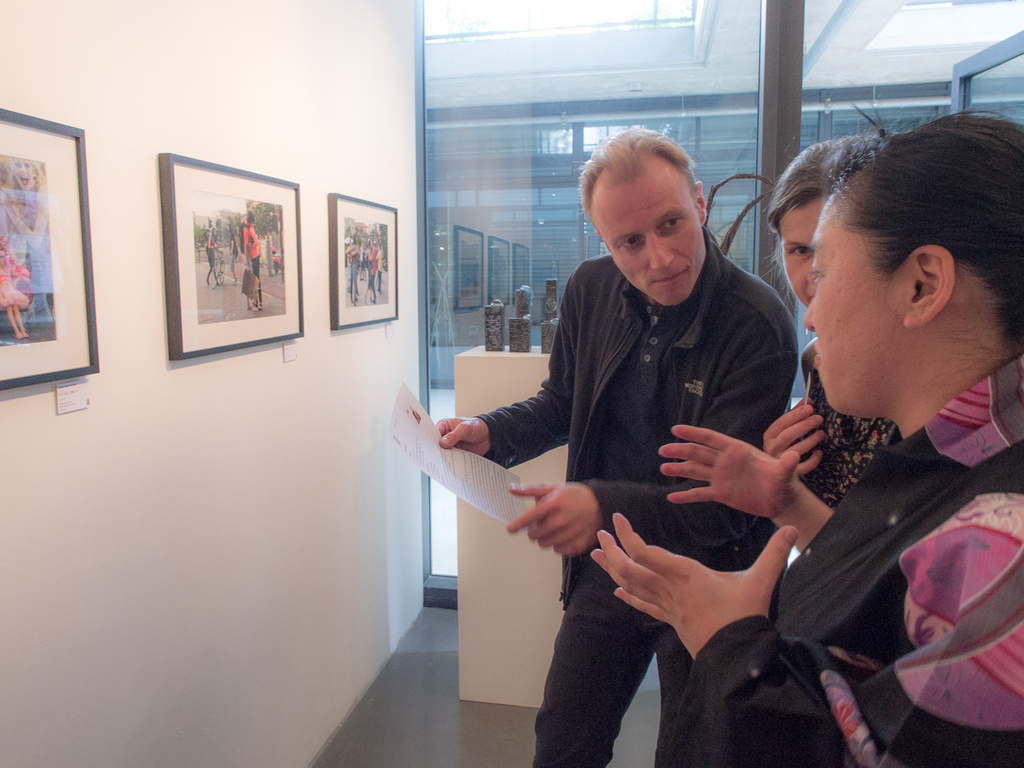 „Herzlichen Dank dafür, dass Sie den Weg in meine Ausstellung gefunden haben. In den hier versammelten Arbeiten zeige ich Menschen, deren alltägliches Tun mich beeindruckt und berührt hat. Es wäre das größte Glück für mich, würden meine Bilder auf die eine oder andere Art zu Ihnen sprechen.“