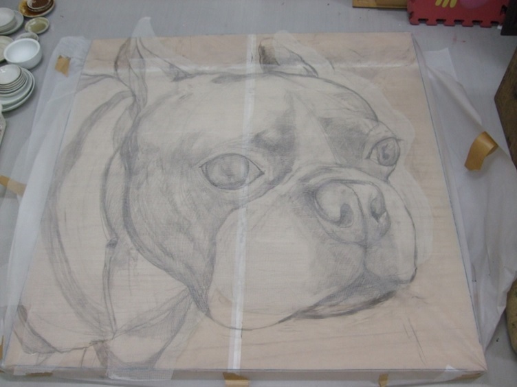 Kanreisa ist eine grob gewobene und hart gestärtkte Baumwolle, und es ist eigenlich ein landwirtschaftliches Material. Die Eigentümlichkeit dieses Materials und die Methode, wie man es als Malmaterial (Untergrundmaterial) benutzen kann, habe ich in meiner Doktorarbeit erforscht.