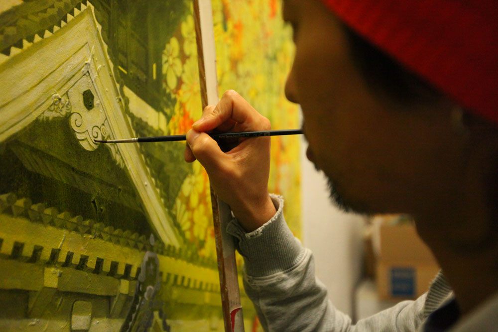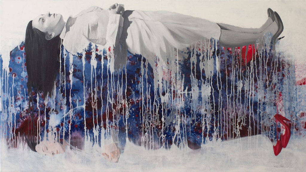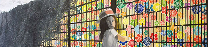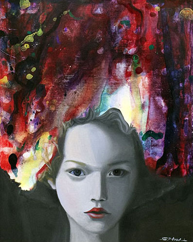 Der 1977 in Japan geborene Künstler Satoshi Hoshi, der sich gerne von Träumen inspirieren lässt und in Gustav Klimt und Ross Bleckner seine künstlerischen Vorbilder sieht, siedelt seine Kunst zwischen Realität und Fantasie an. Er vermittelt seine abstrakten Visionen durch konkrete Objekte, die er in seiner vielschichtigen Maltechnik umsetzt. Er verwendet dazu beispielsweise japanische Blumenmuster, die er ganz unterschiedlich kombiniert und dadurch verschiedenen Motiven neue Bedeutung verleiht. Satoshi Hoshi sucht oft in Zeitschriften nach Bildern, die für ihn in einem Zusammenhang mit seinen abstrakten Vorstellungen stehen. Er setzt sich dann intensiv mit dem Bildmaterial auseinander und die Bildidee entsteht aus der Verschmelzung von eigener Vision und den neu gewonnenen Eindrücken. Nach und nach werden die Details klarer und die Motivation größer, diese darzustellen. Er formuliert selbst sehr prägnant: „Die wesentliche Arbeit passiert, bevor man zum Pinsel greift. Wichtig sind Visionen aber auch der Wille, diese Visionen darstellen zu wollen.“