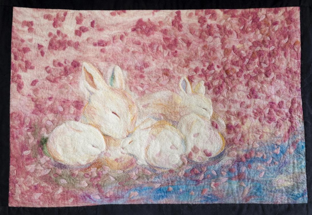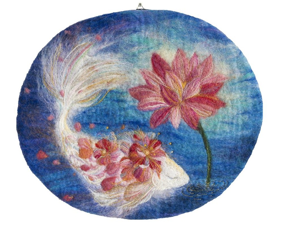 Das Färben und Weben habe ich fachlich an Douda Highschool of Arts in Kyoto gelernt und sie danach an der Kyoto Universität der Künste weiter studiert. An der Universität habe ich das japanische traditionelle Weben studiert und viele KIMONOs, gemacht.Am Magisterkurs habe ich angefangen, die flachen Werke mit Filztechnik zu machen. Heute beschäftige ich mich hauptsächlich mit Produktionen aus Filz.