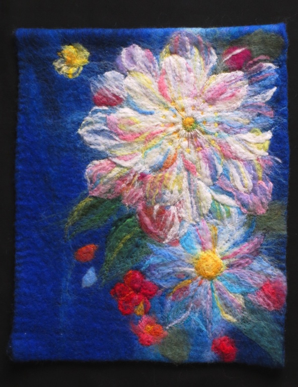 Das Färben und Weben habe ich fachlich an Douda Highschool of Arts in Kyoto gelernt und sie danach an der Kyoto Universität der Künste weiter studiert. An der Universität habe ich das japanische traditionelle Weben studiert und viele KIMONOs, gemacht.Am Magisterkurs habe ich angefangen, die flachen Werke mit Filztechnik zu machen. Heute beschäftige ich mich hauptsächlich mit Produktionen aus Filz.